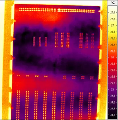 Eine Wärmebildkamera erfasst dieses Muster unmittelbar nach dem Fluxen und wertet es intelligent aus. Die Analyse erfolgt anhand eines Referenzmodells, entweder einer thermografischen Aufnahme oder eines CAD-basierten digitalen Zwillings.